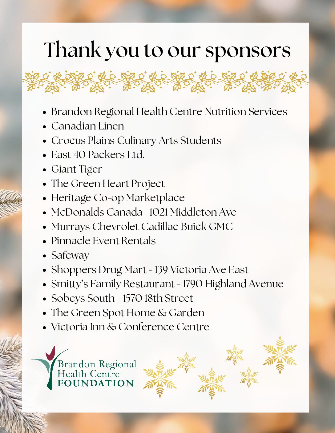 For more information about donating to this year’s Tree of Lights Campaign, contact the BRHC Foundation Office at 204-578-4227 or info@brhcfoundation.ca