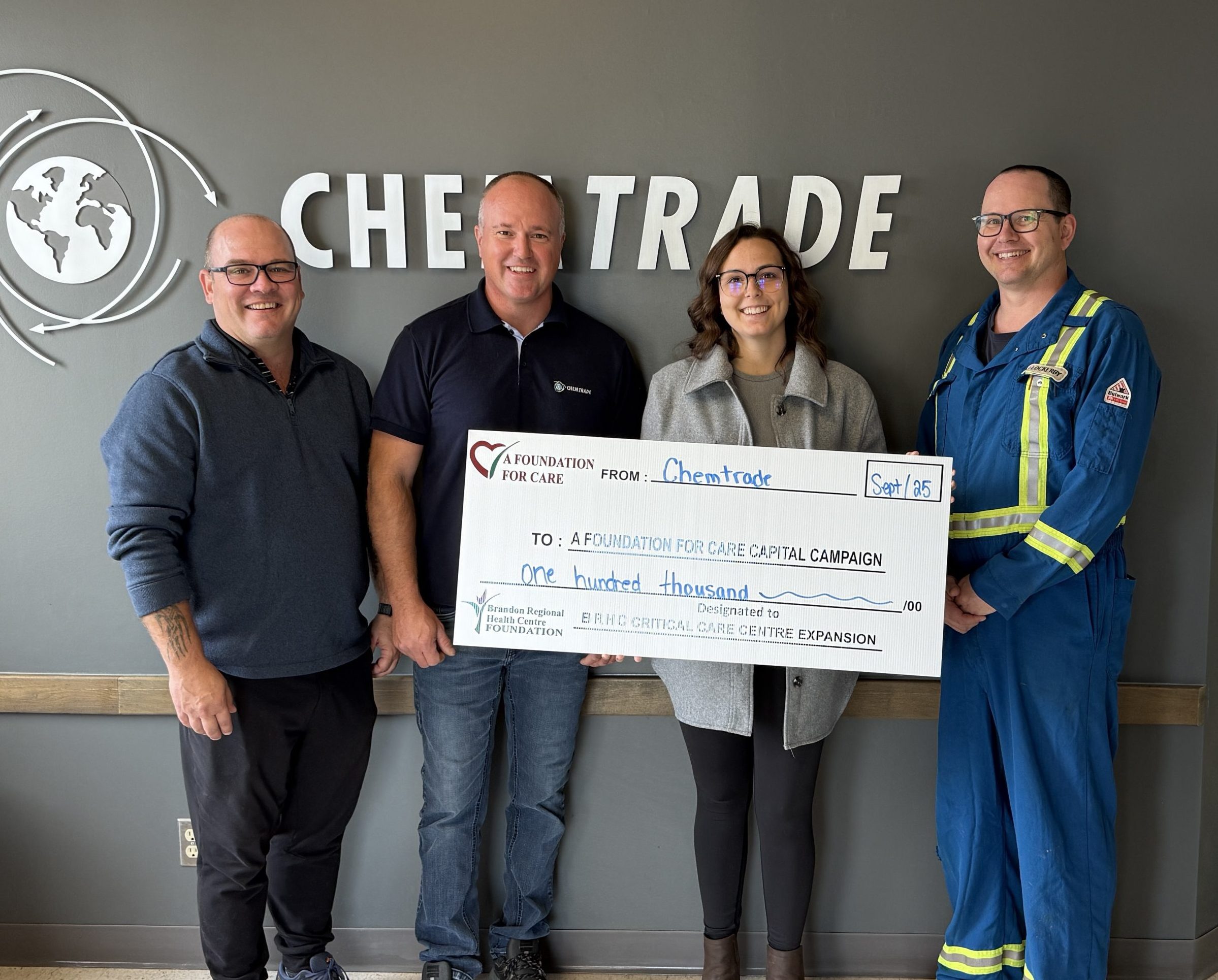 Brandon, MB — September 24, 2025 – The Brandon Regional Health Centre (BRHC) Foundation is proud to announce a generous donation of $100 000 from Chemtrade Logistics, a valued Brandon business committed to supporting our region’s health care.